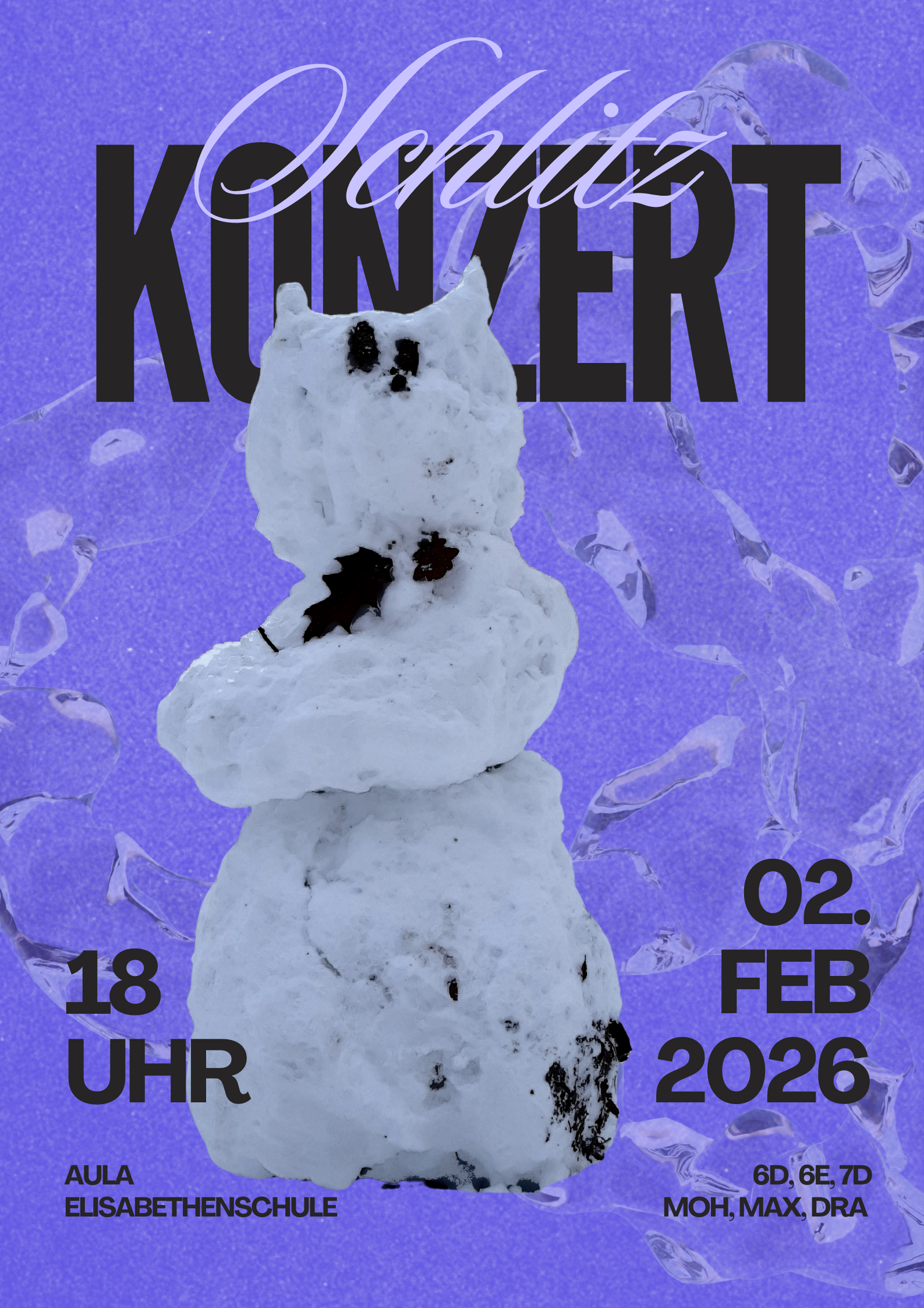 Nach einer intensiven und verschneiten Probenfahrt nach Schlitz geben die Musikklassen 6d, 6e und 7d am 2.2.26 um 18:00 in der Aula ein buntes Winterkonzert. Eintritt frei. Herzliche Einladung!